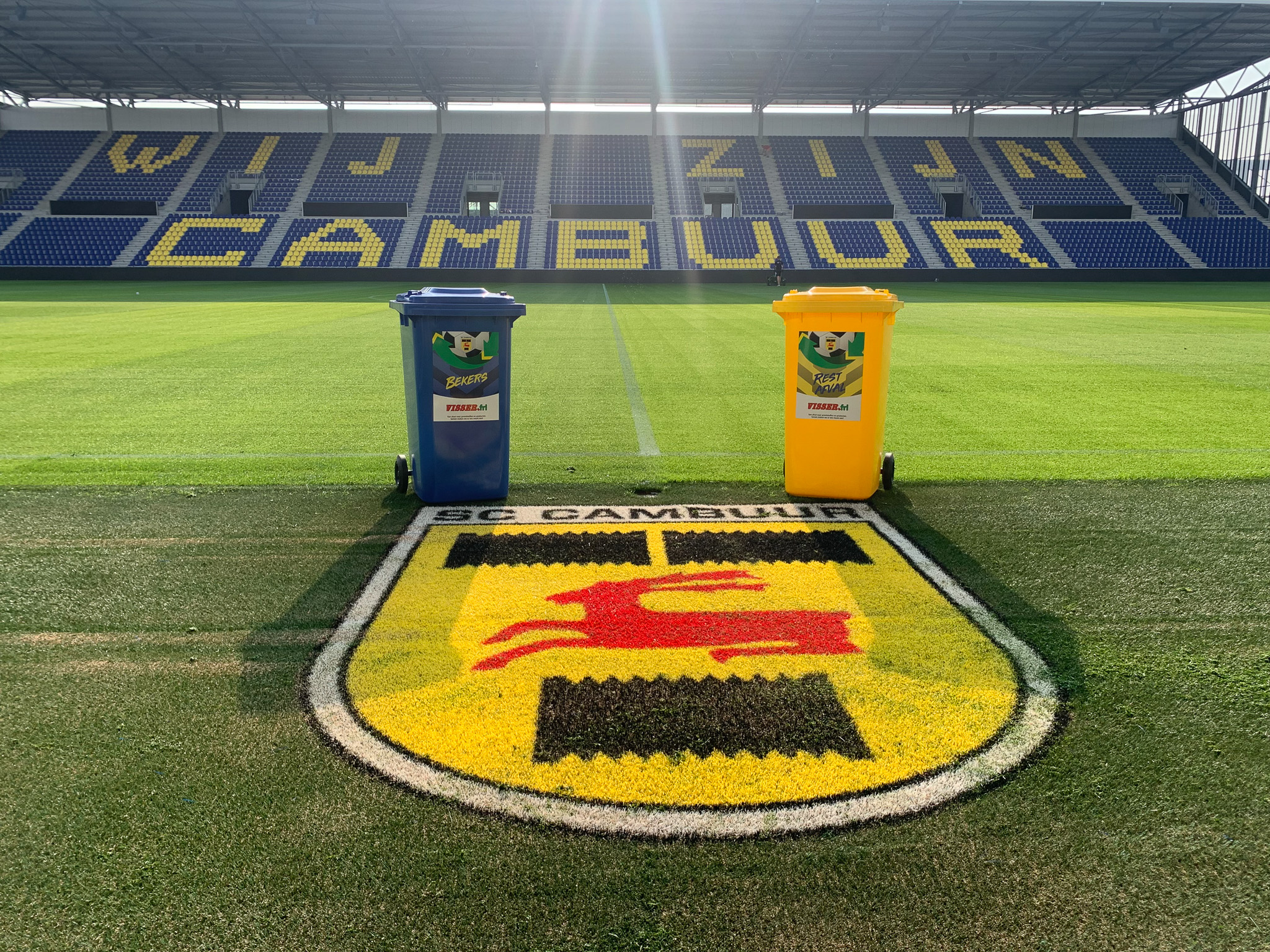 Zodra je het nieuwe stadion binnenloopt, valt het meteen op: op strategische plekken staan rolcontainers voor plastic bekers en restafval, uitgevoerd in de herkenbare blauw-gele clubkleuren van sc Cambuur. Deze containers dragen niet alleen bij aan afvalinzameling, maar ook aan de sfeer en identiteit van het stadion.
