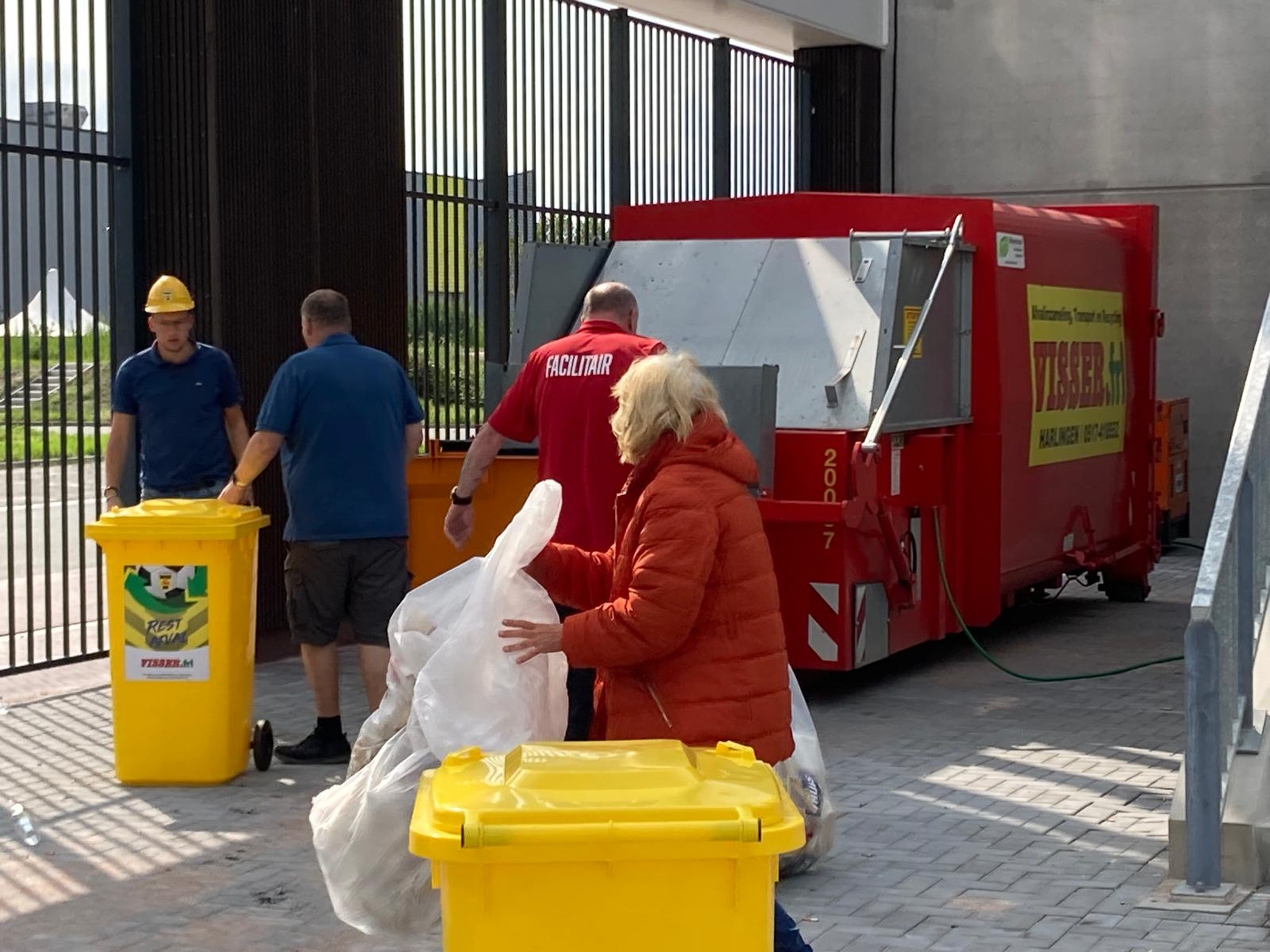 Om al dit afval vervolgens op één locatie te verzamelen voor transport, is aan de zuidkant van het stadion een milieustraat ingericht, met onder andere een perscontainer voor restafval. Deze zorgt ervoor dat grote hoeveelheden restafval direct op locatie worden samengeperst. Dat leidt tot aanzienlijk minder ritten met een inzamelwagen, wat niet alleen efficiënter is, maar ook bijdraagt aan het verminderen van CO-2-uitstoot en het ontlasten van het verkeer rondom het stadion.